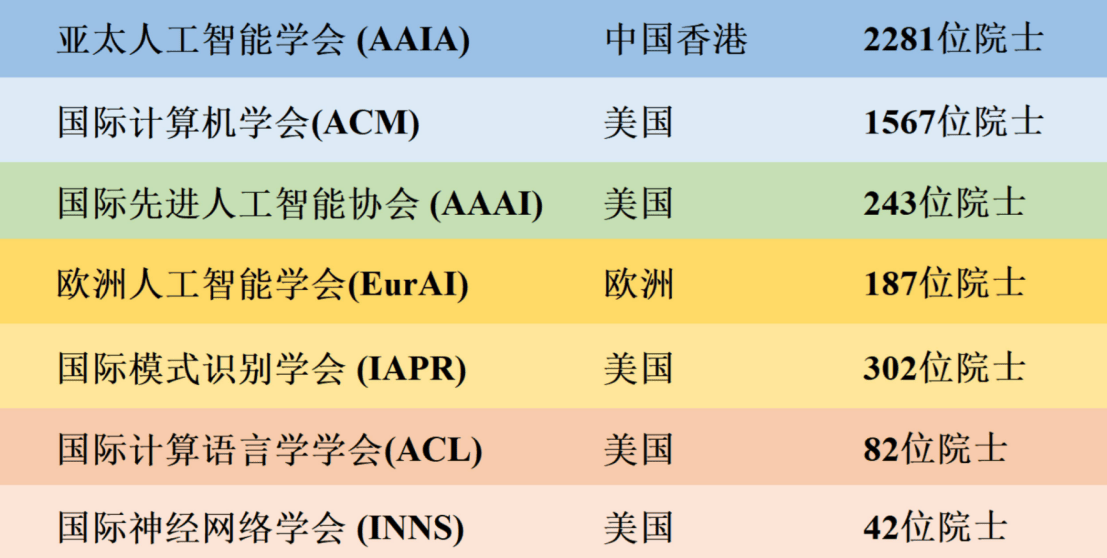 亚太人工智能学会(AAIA)成立于2021年,AAIA现有院士2281人,此中诺贝尔得从2人、ACM图灵得从3人、美国国度科学院院士29人、美国国度工程院院士78人、英国皇家工程院院士46人、英国皇家科学院院士33人、国度科学院院士18人、国度工程院院士18人、法国科学院院士11人、中国科学院院士23人、中国工程院院士24人、日本工程院院士33人、韩国科学院院士25人、科学院院士9人、工程院院士11人、皇家科学院院士32人、工程院院士74人、荷兰皇家科学院院士14人、欧洲科学院院士221人及其他发国度院士、以及1516位IEEE会士、243位ACM会士、92位AAAI会士、68位EurAI会士、143位IAPR会士、22位ACL会士、18位INNS会士及其他国际出名组织会士等。