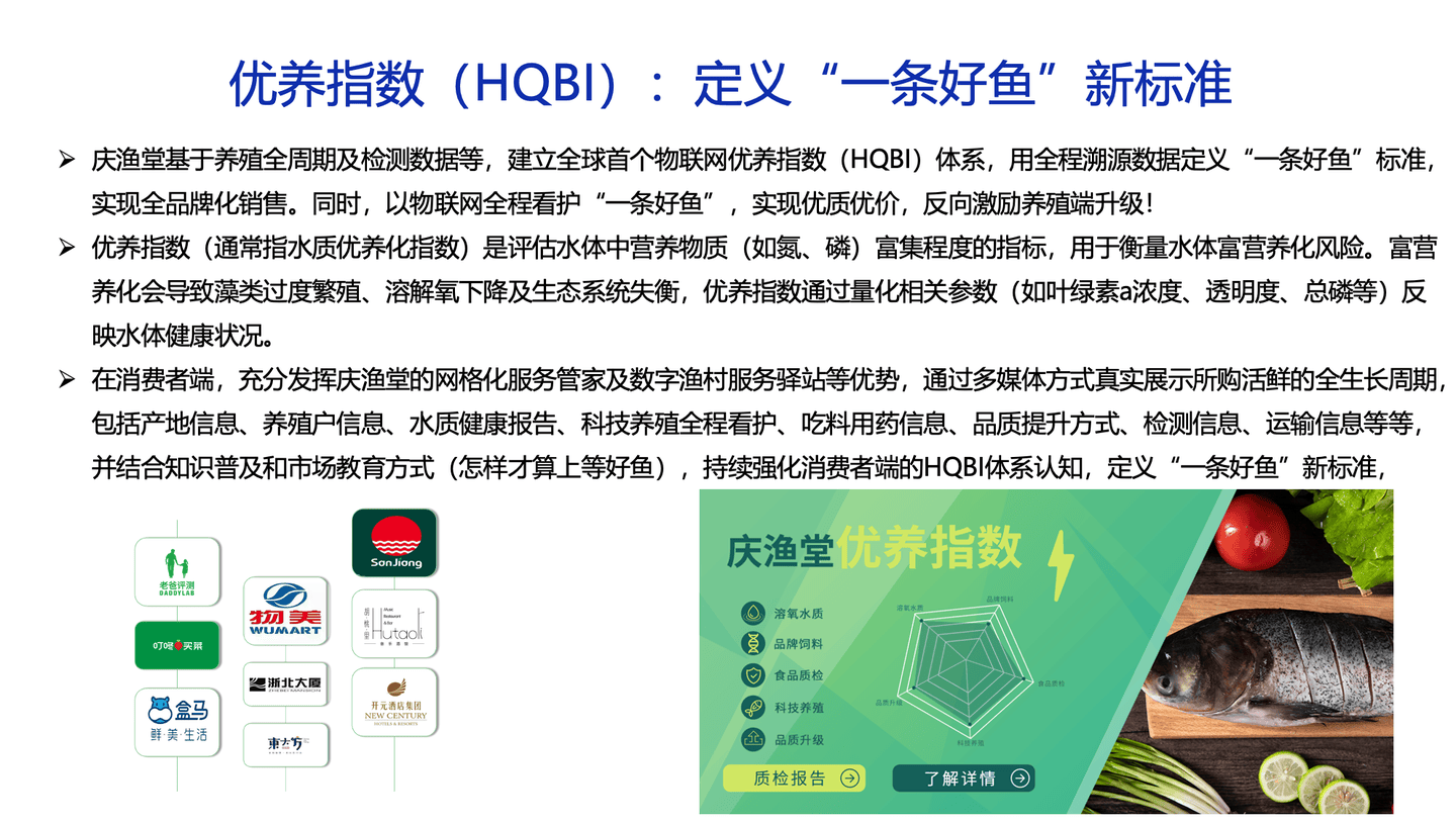 2025年快速增加的品牌次要分为两类:一是区域公用品牌,以“安康汉水鱼”为代表,2025年品牌价值冲破53。59亿元,较“十四五”初期实现翻倍增加,旗下“安康钱鱼”“安康花鲢”获地舆标记认证,通过“生态养殖+品牌溢价”模式抢占内陆高端市场;二是行业龙头企业,如通威股份、国联水产等,凭仗全财产链结构和数字化劣势,市场份额持续提拔,此中通威股份智能养殖设备普及率达84%,国联水产预制菜产物发卖额同比增加34%。