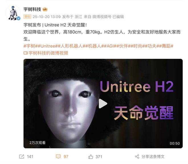 今天,宇树科技正式发布全尺寸人形机械人 H2。该机身高 180 cm,具备 31 个度,可以或许完成芭蕾舞、技击等高难度动做,展示出火速取文雅的活动能力。据引见,H2 正在度设置装备摆设上较 H1 提拔 63%,特别正在手臂取腰部部门添加了更多关节,使其上肢动做更接近人类。宇树方面暗示,H2 的推出是公司「全尺寸、全场景、全价位」计谋的主要一步,将来将通过产物矩阵的细分,进一步拓展工业、科研及消费级市场。
