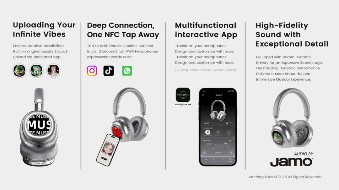 MorningBlues的展位非分特别抓眼球——此次他们带来了全球初创的VWS。取保守分歧,它不只是音乐播放设备,更是一件能够穿正在身上的潮水配件。每只内置独家研发的灵动屏幕,每一帧画面都承载原创设想,同时支撑用户自从上传内容,让个性化气概间接跃然耳畔。现场体验时,你能够正在触屏上快速操做动态徽章、调整EQ、上传自创海报,以至用NFC功能正在三秒内添加老友。搭载40mm动态驱动单位,供给宽阔声场取高保实音效,兼顾时髦外不雅取沉浸式音乐体验。无论是陌头出行仍是室内社交,它都像是一件能够被看见、被的音乐艺术品